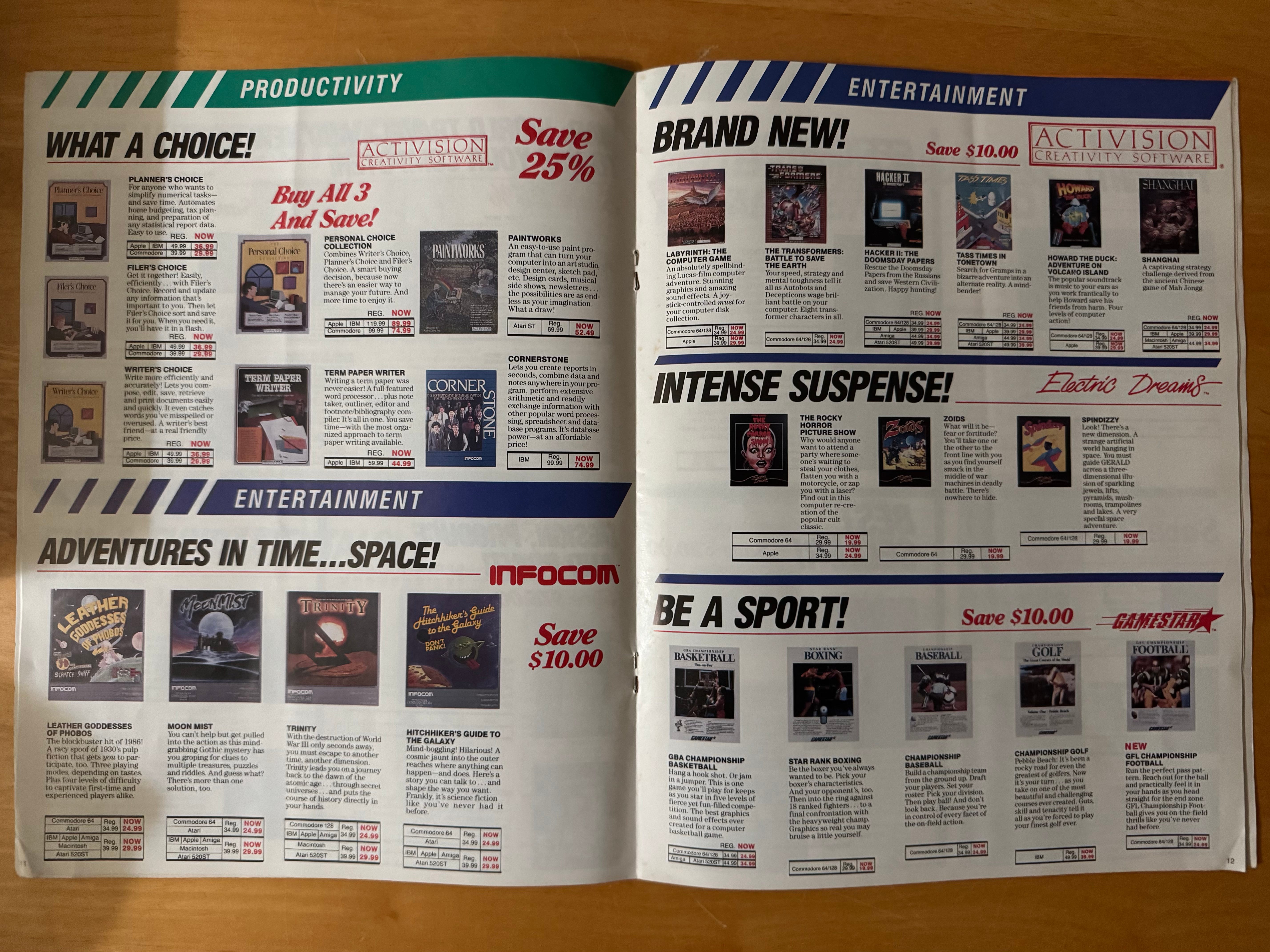 It has sections for Entertainment, Productivity, Education and Accessories. It is entirely focused on computers with no mention of game consoles. I was somewhat surprised by that as the Nintendo Entertainment System was huge by 1986 and going into 1987.
