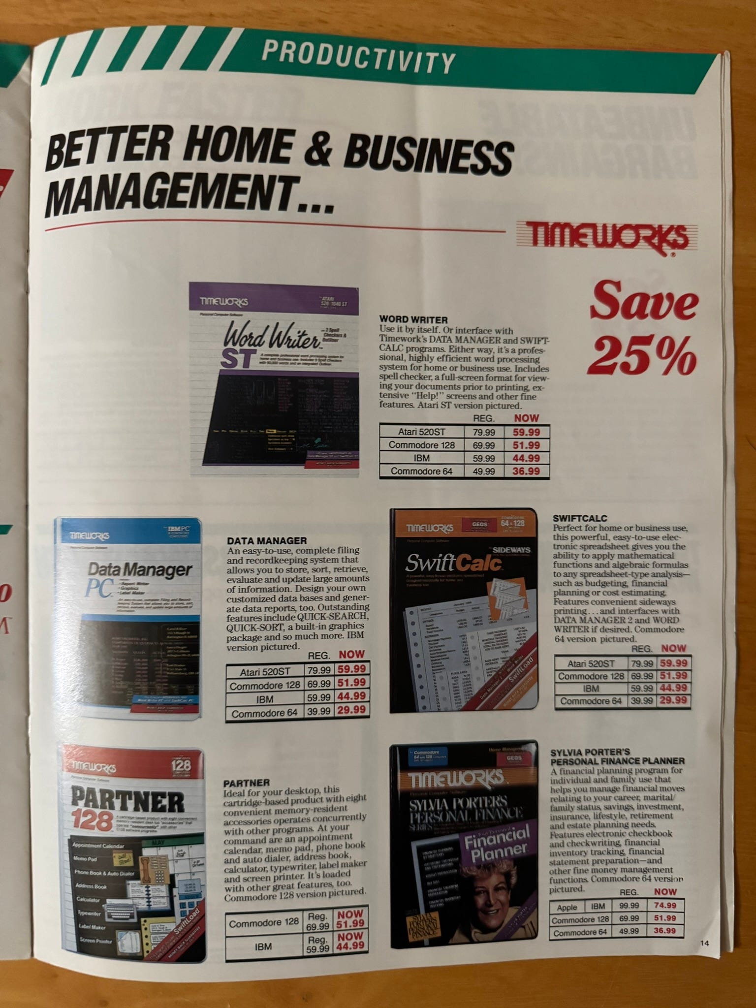 Timeworks got a big section for their productive software products. Word Writer was popular on the Atari ST and it is nice to see here.